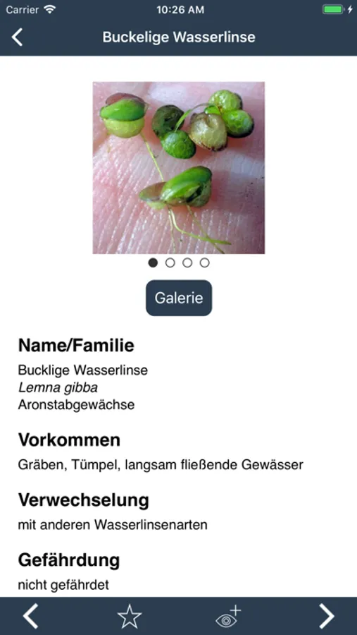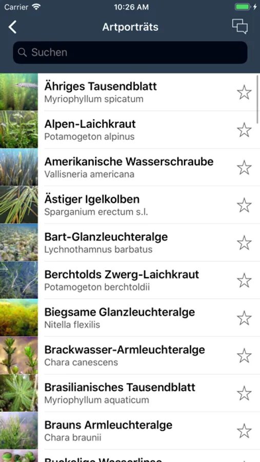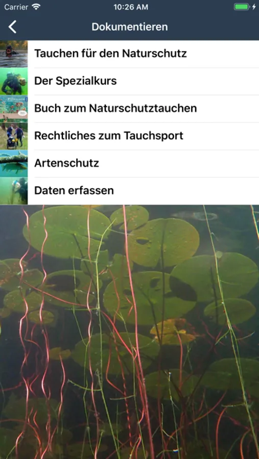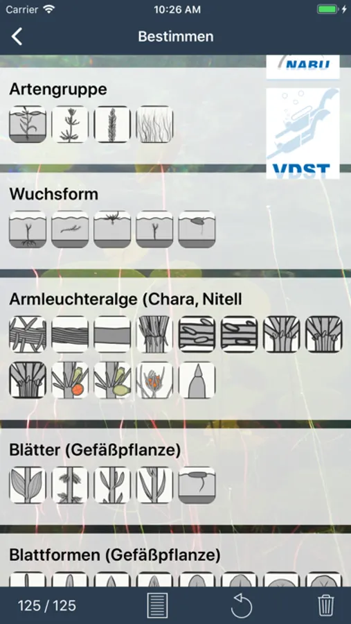 Die Tauch-App Wasserpflanzen stellt Ihnen 124 Pflanzenarten Deutschlands, Österreich und der Schweiz mit den wichtigsten Informationen und typischen Bildern zur Verfügung. Ergänzt werden die Artenporträts durch eine Bestimmungshilfe in Form eines bebilderten Auswahlschlüssels. Für den Fall, dass Sie nicht sofort wissen, was Sie gerade beobachtet haben, kommen Sie so über gut erkennbare Merkmale schnell zu einer treffenden Auswahl passender Arten.
