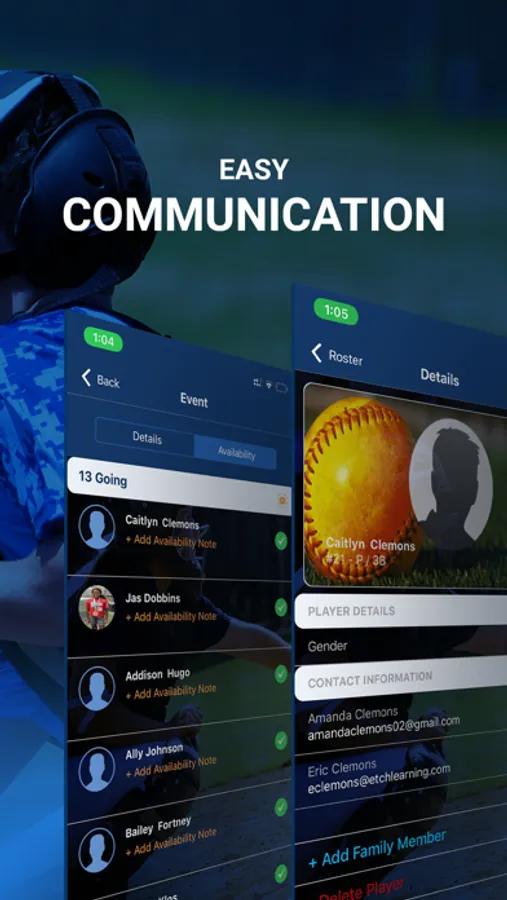 Availability - Players can let you know from within the app if they’re coming to the game, practice, or event