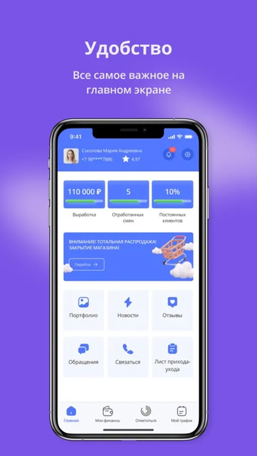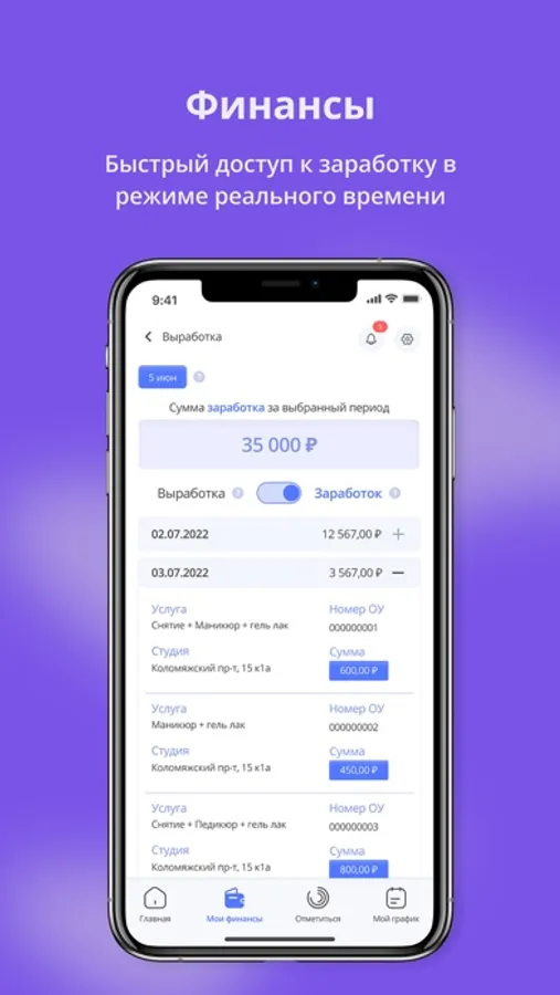 Приложение позволяет мастеру следить за основными метриками и контролировать свою деятельность.