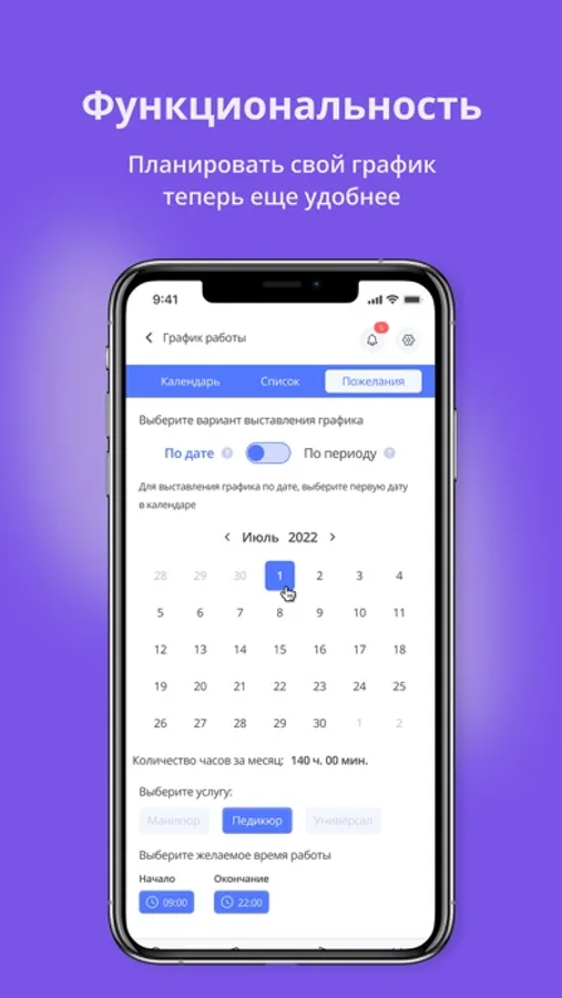 - Отслеживание графика работы и возможность предложить поставить себя в график в определенную студию на определенное время