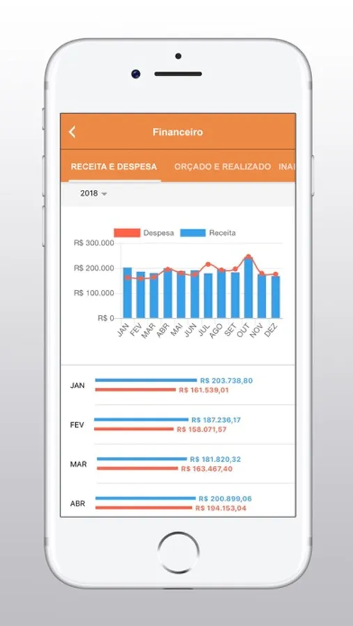 - comparativo de orçado versus realizado (gráficos e detalhamento)