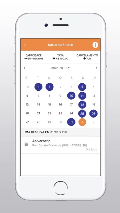 - reservas no salão de festas, mudanças e outras agendas,