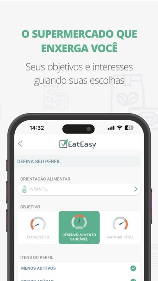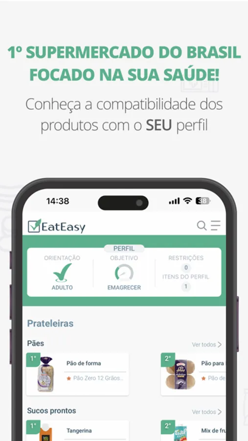 EatEasy organiza os Supermercados de acordo com suas preferências e objetivos de saúde.