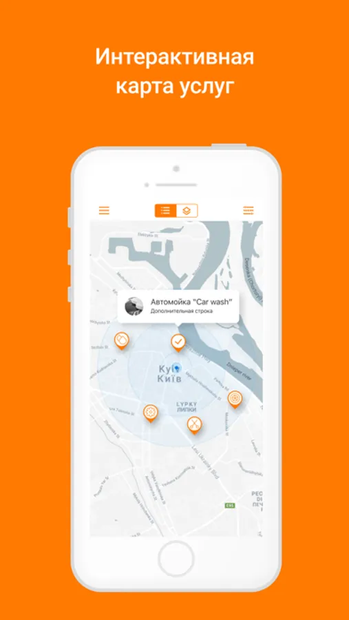 - найти услуги через интерактивную карту поблизости / в выбранном районе