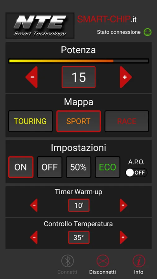 La centralina SMART-CHIP gestisce in modo automatico tutti i parametri garantendo in modo molto semplice un ottimo incremento di prestazioni ed anche un risparmio di carburante.