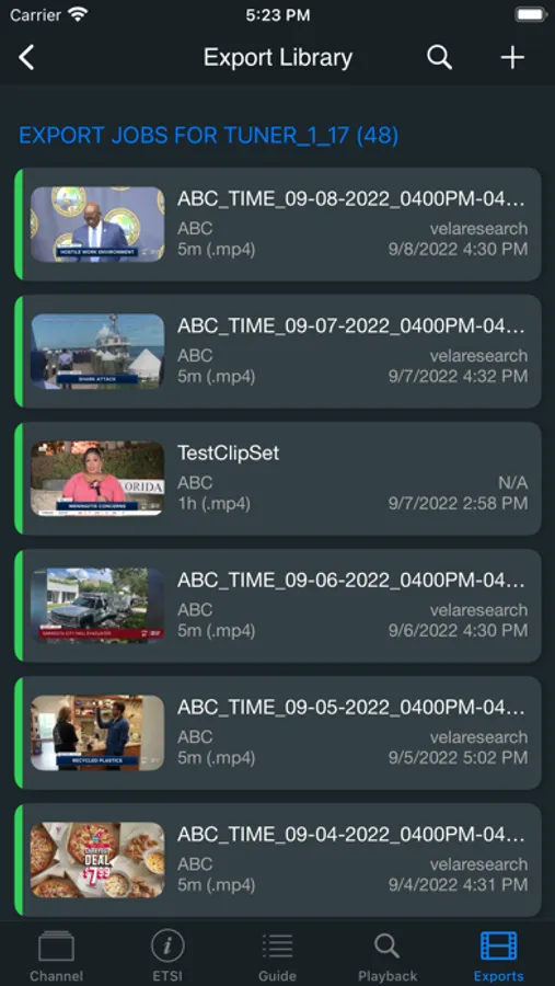 View Export Library clips created on your Systems