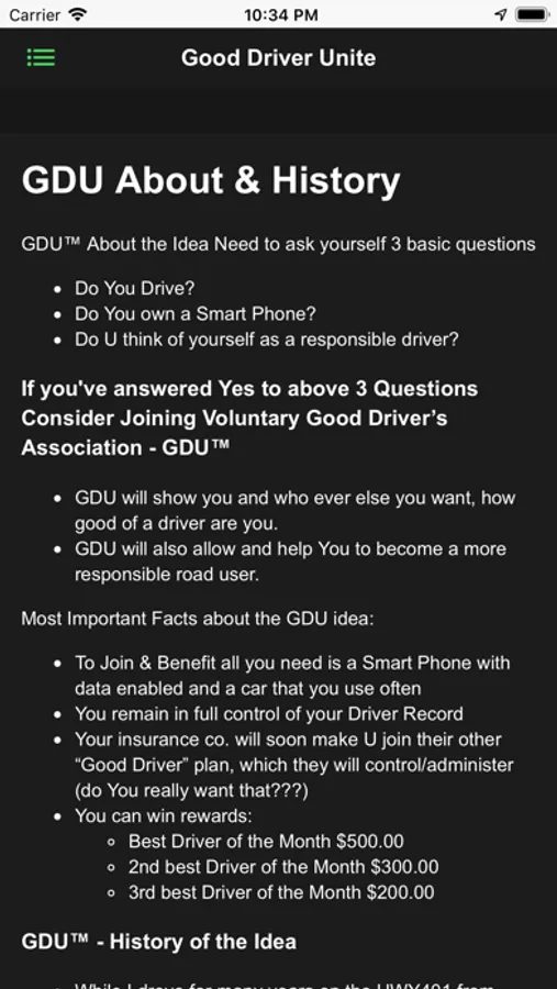 If you are a regular driver, own a smart phone and think of yourself as a responsible Driver, GDU, GoodDriversUnite, is the reward application for you.