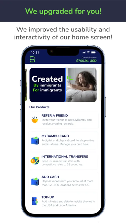 MyBambu is a mobile application that offers an array of financial solutions to provide convenient, reliable and affordable services to everyone, regardless of their immigration status-No SSN needed. Our services include, international money transfers, domestic and international bill payment, domestic and international phone top-up, peer to peer transfers and more.