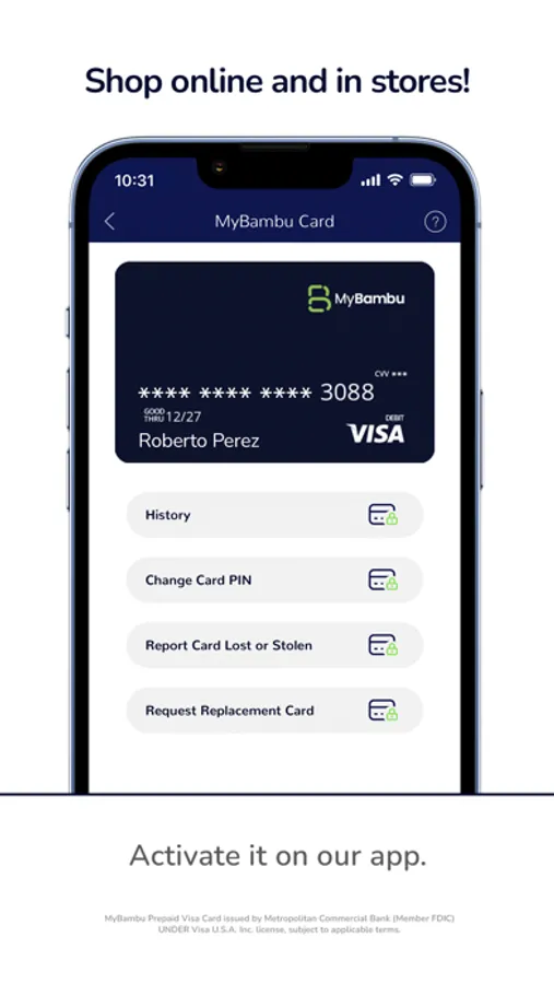-MyBambu Prepaid Debit Visa Card: By using this card, you agree to the terms and conditions of the cardholder agreement and fee schedule, if any. The MyBambu Prepaid Visa Card is issued by Metropolitan Commercial Bank (Member FDIC) pursuant to a license from Visa U.S.A. Inc. “Metropolitan Commercial Bank” and “Metropolitan” are registered trademarks of Metropolitan Commercial Bank ©2014.