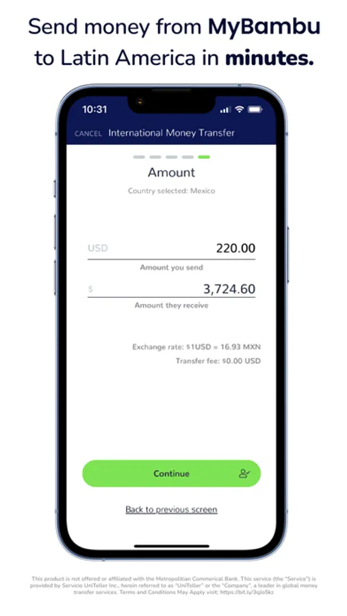 -International Money Transfer: This service (the “Service”) is provided by Servicio UniTeller Inc., herein referred to as “UniTeller” or the “Company”, a leader in global money transfer services. Terms and Conditions May Apply visit: https://bit.ly/3qJo5kz