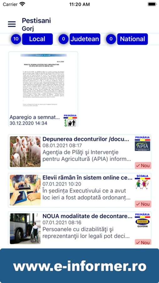 Prin intermediul aplicatiei Informer Mobile (aplicatie oferita gratuit), cetatenii vor putea receptiona informatii de interes public transmise de primarii, gradinite si scoli.