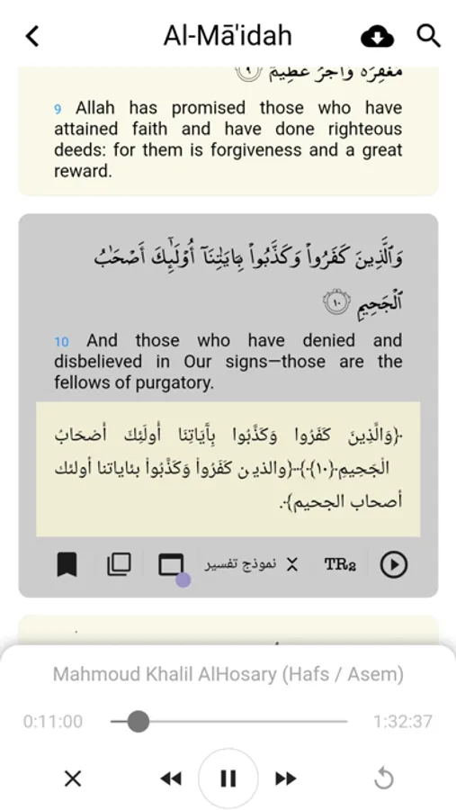 Terms that have footnotes related to the Qira’at’ are written in the text in red, and the related footnotes can be enabled or disabled from the settings.