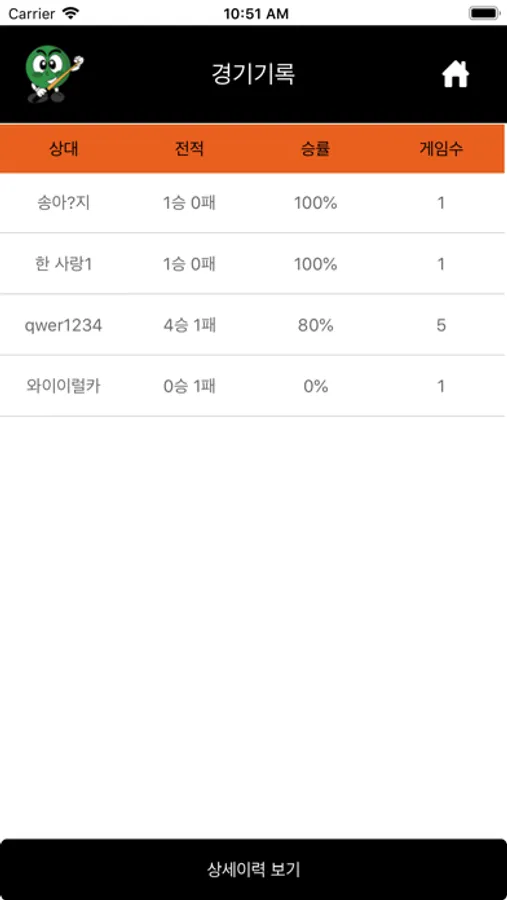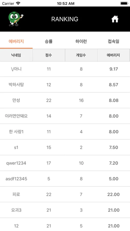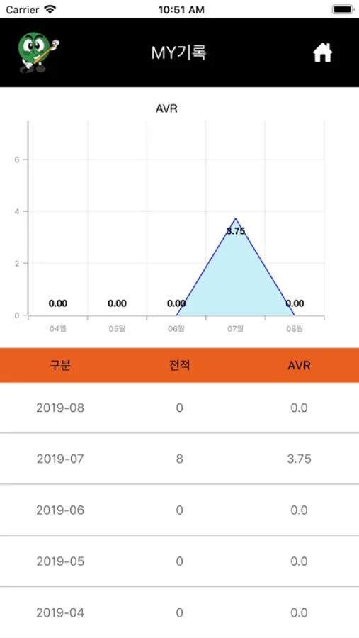 나의 기록, 경기이력, AVR관리, 동호회 랭킹 관리을 합니다.
