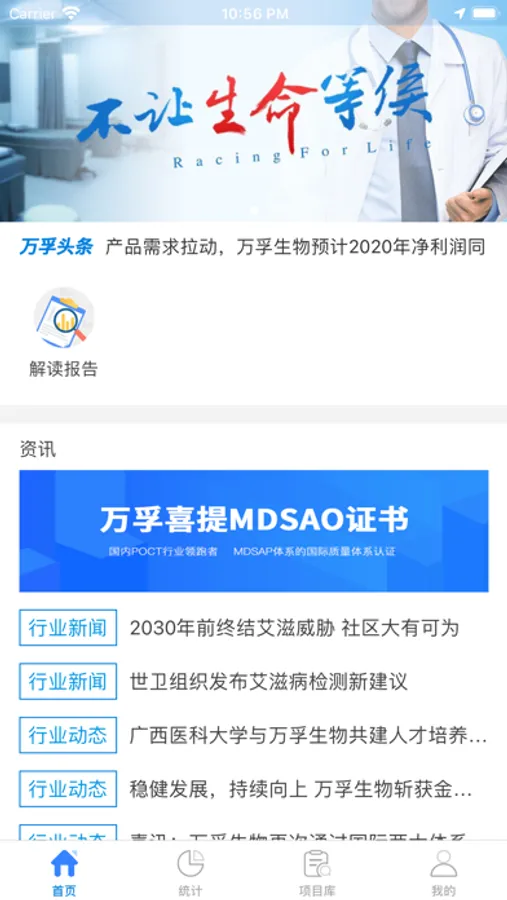 万孚区域检测信息系统,支持用户进行标本录入、标本配送、查看报告、上传检验单、通讯功能等操作。