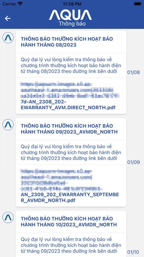 eAQUA Warranty Screenshots