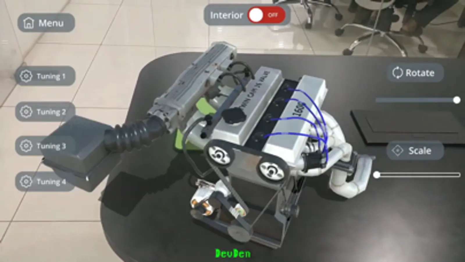 This showcase application enables the users to visualize the engine in the real world on the go, regardless of their location. The options to scale, position and rotate make it more interactive and easier to view the inner parts and how they function. The easy to access UI makes it more user-friendly.
