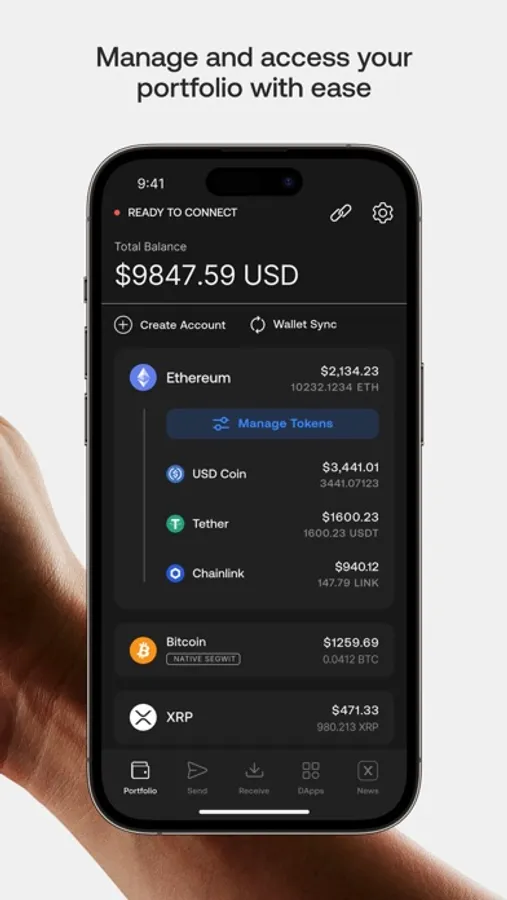 Bluetooth connections are established with multiple layers of authentication including PIN, password and One-Time-Password, to ensure secure transactions such as the receiving, sending of crypto assets, and portfolio balance inquiry.