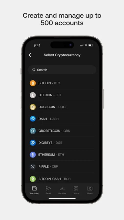 SecuX Mobile App currently supports 1000+ coins and tokens, including major coins such as Bitcoin (BTC), Bitcoin Cash (BCH), Ethereum (ETH), Litecoin (LTC), Ripple (XRP), Groestlcoin (GRS), Binance Coin (BNB), Tron(TRX), DigiByte (DGB), Dash (DASH), Dogecoin (DOGE), Stellar (XLM), Binance Smart Chain BEP-20 tokens, Tron TRC-10/20 tokens and all ERC-20 tokens.