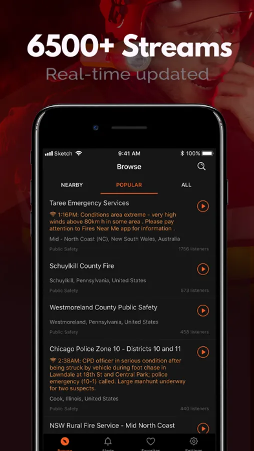 Discover the local police scanner live radio, fire alarm, wildfire map and updates, railroad radios, air traffic control, weather alert radios, hurricane scanner frequencies, marine radios, emergency alerts, and amateur radio stations. Save your favorite scanners for quick access in this live police scanner and scanner live radio app. You're able to hear local news, emergency, events, weather warnings, and public safety affairs near you all the time!