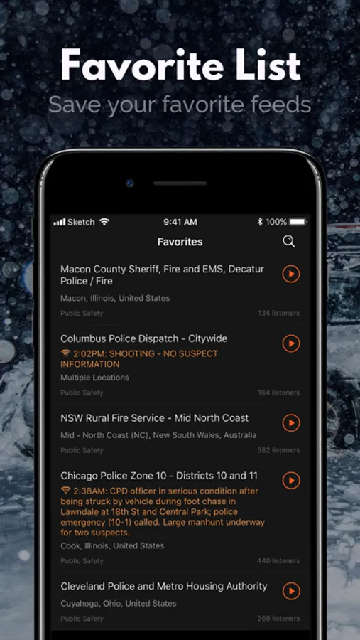 Filter scanners by location. Don't just list all local feeds in a state, switch locations, and discover what is happening around citizens in other states with the best police scanner and scanner live radio app.