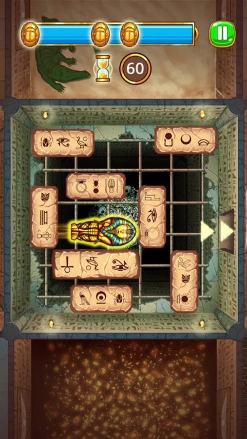 Enter in unknown pyramids and to try to exit pharaonic treasures. You must find the way to move out the sarchophagus from the room by moving stone blocks. Find the right path and become the greatest pyramid thief.