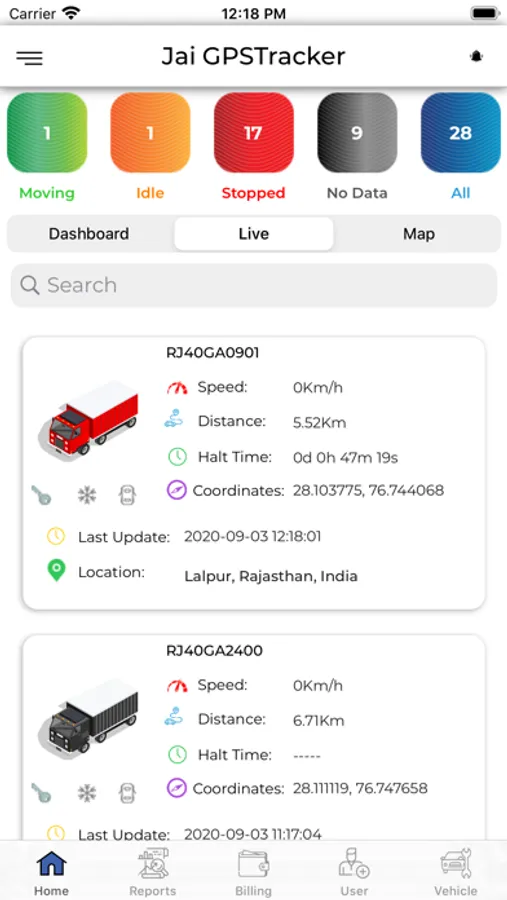 Jai GPSTracker offers comprehensive software solution for commercial fleet tracking and management. Our GPS vehicle tracking devices offer worldwide GPS satellite coverage with nationwide customer sales and service network. Globally check your vehicle's usage and recover it efficiently in case of theft. As a fleet operator our data helps you eliminate unsafe practices and increase security of drivers and vehicles.