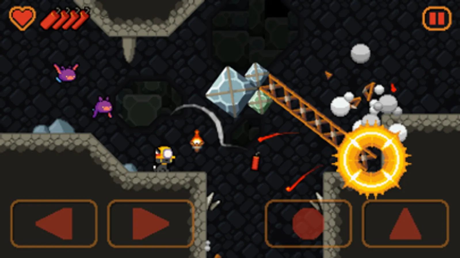 Mineblast!! is a platformer destruction game with fully destructible environments. Blast walls to open your way, blast soil and crates to find precious gems, blast wooden platforms to use them as a bridge, there is no limit to your creativity.
