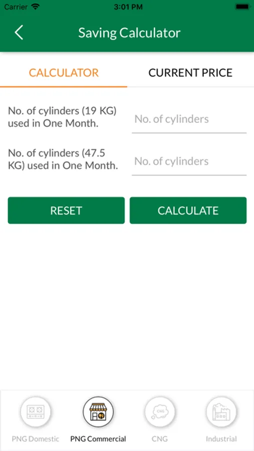 customers (Domestic/Industrial/ Commercial) and CNG customers. The savings calculator is