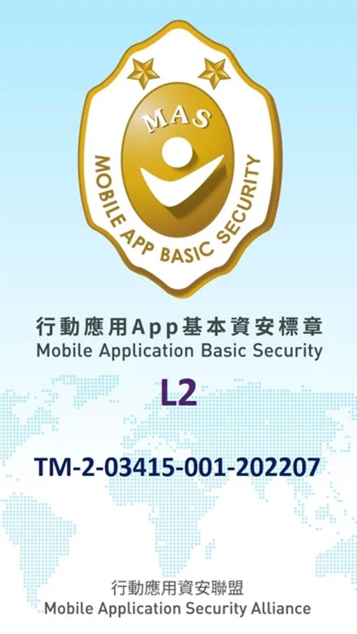 APP (1.6.0) 經合格實驗室檢測,符合「行動應用App基本資安檢測基準(v3.2)」安全等級 L2