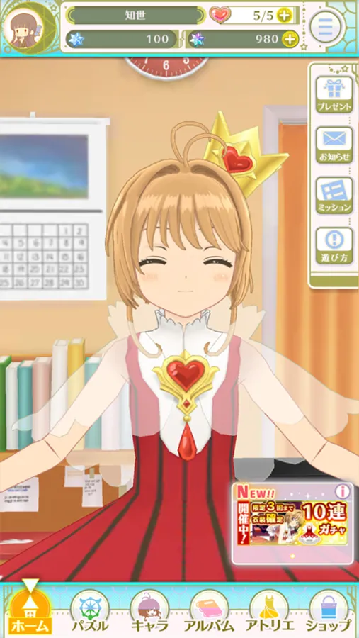 さくらちゃんの着替えやカードの使用時には画面いっぱいに演出が表示される!