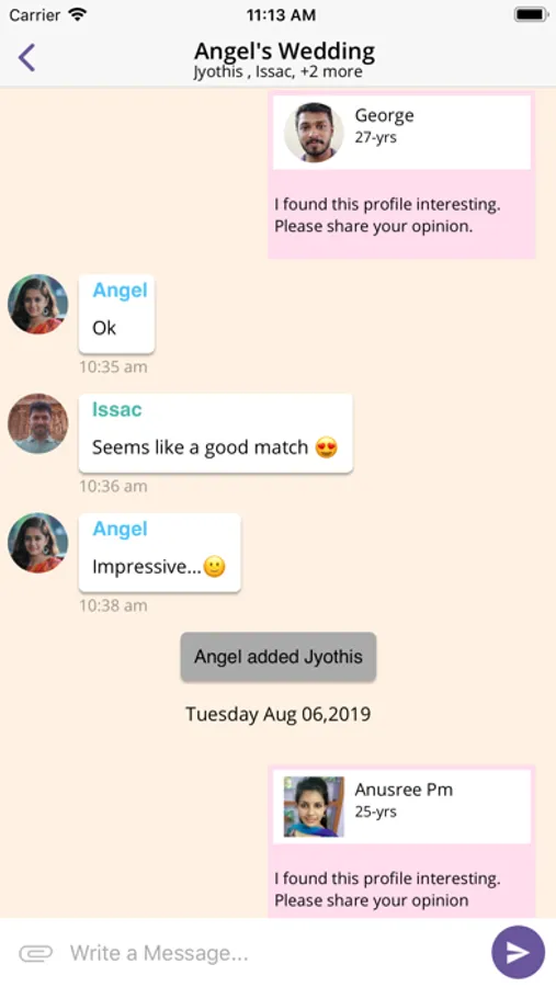 COLLABORATE - Invite family and friends to form a Wedviser group. Collaborate with them to start conversations about preferences, share match suggestions, have discussions regarding profiles and get immediate feedback.