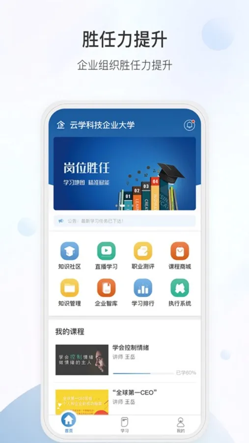 企胜力基于企业组织胜任力提升需求,助力企业搭建自有知识体系,通过学习任务提升员工关键岗位能力,实现人才的快速复制。