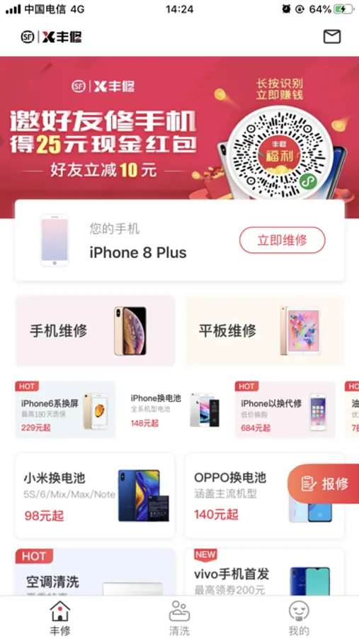 线上下单,5分钟响应,2小时上门,1小时修好。