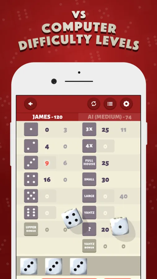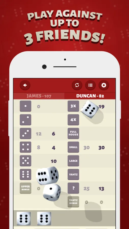 Yaht 3D takes advantage of the performance of modern hand-held devices to bring you accurately simulated dice rolls. See the 3D dice leap out of your phone, spinning, colliding and tumbling under the forces of gravity.