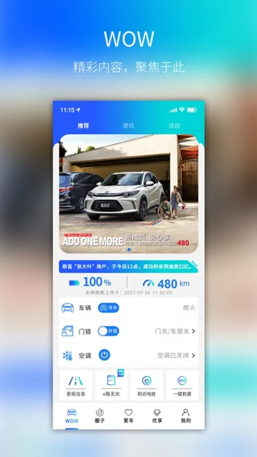 WOW STATION APP以“CONNECT互联、SECURE安心、 BENEFIT增值、FUN乐趣“作为平台的核心服务理念,通过为车主提供更多优质增值服务及专属权益,构筑人车全新关系。