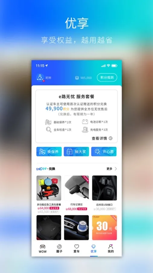 WOW STATION通过智能互联扩大联结,使人与车的联结,延伸至人与人、人与人群、人与特约店的联结。丰富的攒积分方式,欢乐攒积分,兑换更多乐趣。使用越多,获得越多!