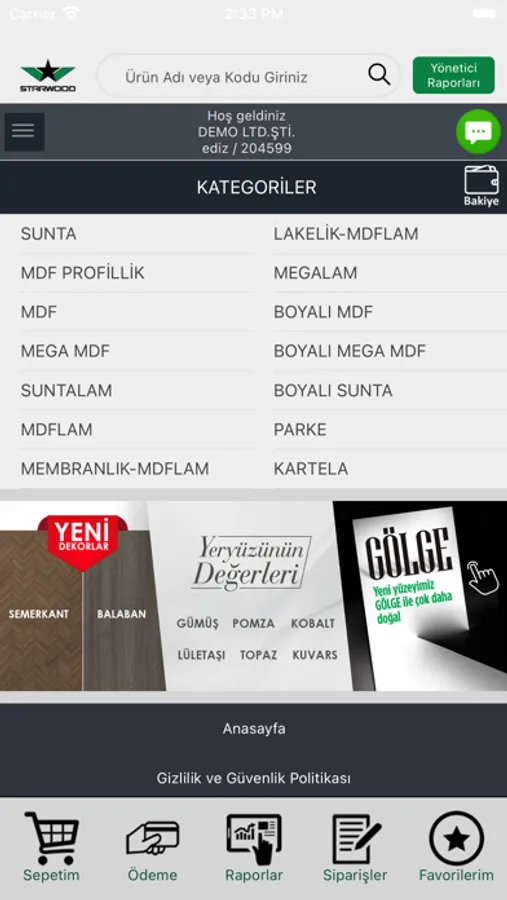 Starwood Orman Ürünleri B2B web portalında gerçekleştirilen işlemlerin, uygulama üzerinden yapılabilmesini sağlar.