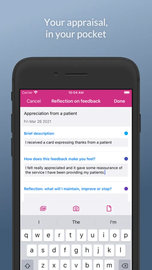 Appraisal Toolkit: Enter supporting information and get ahead for your next appraisal. It’s much more than just a CPD tracker – add other types of entry as well such as colleague feedback and significant events.