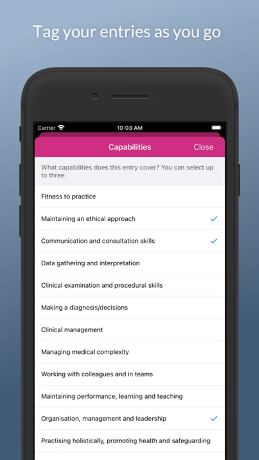 Trainee Portfolio: Use the Portfolio app to create learning logs while everything is fresh in your mind. You can add Clinical Case Reviews, Supporting Documentation, CPD, Reflection on Feedback and any other type of learning log. You can link entries to capabilities, and include your justification.