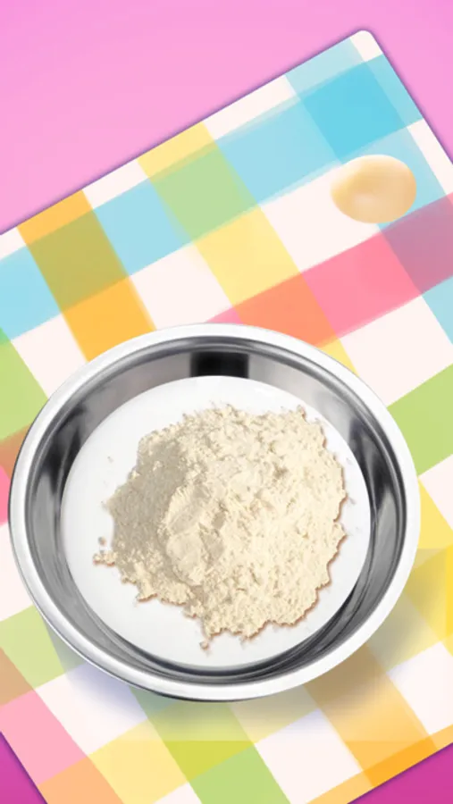 - Drag to add all the ingredients to the bowl, such as milk, ice, flour, eggs... and mix them.