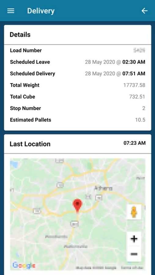 truck's location and route to their store(s) as well as review various pieces of delivery information.