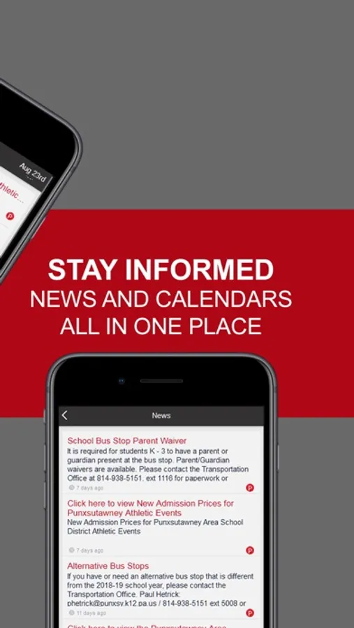 With the Punxsutawney Area School District mobile app, your school district comes alive with the touch of a button. Easily navigate through current news and events or check out the latest updates with social media. Quickly retrieve contact information, sporting scores, lunch menus, and more! It’s your school district available at your fingertips.