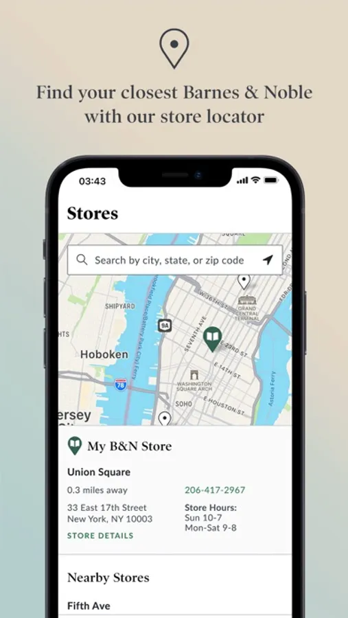 The newly redesigned and redeveloped Barnes & Noble app is the ideal companion for book lovers who want quick and easy access to the world of books. Search, browse and shop our massive selection of books, eBooks, audiobooks, NOOK eReaders & tablets, toys, games, home items, gifts and much more. Ship your items directly to your door, or use our store locator to find the nearest Barnes & Noble bookstore to pick up your order on your own schedule or skip the line in the Cafés with mobile ordering.
