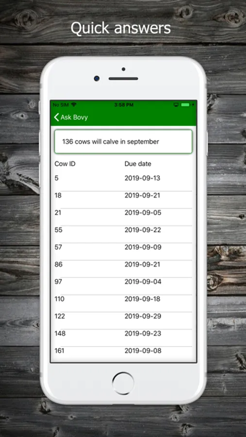 Bovy is an affordable and easy to use mobile application for looking at your DHI dairy records. Upload your DHI file, or have your DHI send it automatically to nextCow. Use Bovy to ask questions in plain English, and Bovy responds in plain English. Bovy understands dairy terms - Bovy knows what a cow is. No menus, no commands, just speak or type your question. Bovy is simple and fun to use !