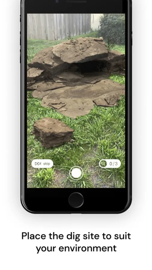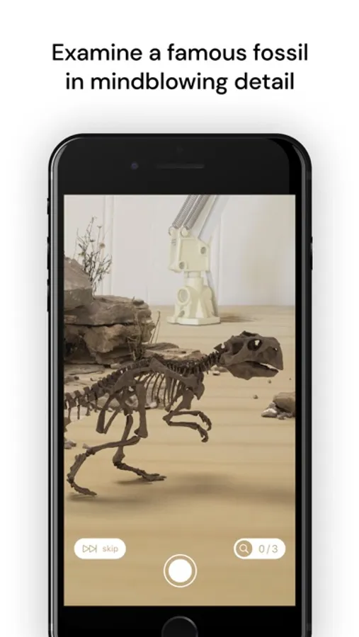 Listen to clues and explore the AR fossil to reveal amazing evidence hidden in the stone relating to the animal's movement and outward appearance. After researching the fossil, watch as the animal's bones rise from the rock to assemble the full skeleton which proceeds to walk around your own room with haunting realism, due to the advanced, anatomically correct and weighted animation.