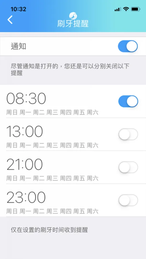智能声波震动牙刷支持蓝牙功能, 您可以借助智能应用程式获得更理想的口腔护理效果, 进一步改善口腔护理习惯。