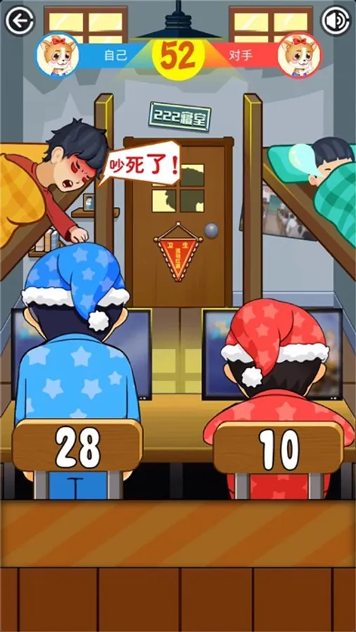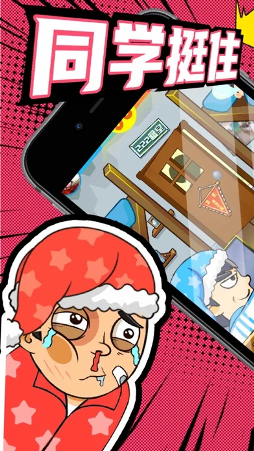 还在苦恼闲暇时光如何热情愉快度过?同学挺住是你的手游良伴。这是一款魔性搞怪的卡通画风打造的休闲娱乐类双人竞技手游,非常适合朋友一起互怼,也很考验反应力和手速,趣味的玩法和宿舍场景模拟带你回忆美好学生时光。青春洋溢的学生时代,除了严厉的老师,可爱的同学,让人怀念的就是宿舍生活。如何在室友熟睡,宿管老师紧密巡查的情况下快速攻击对手不被发现?不仅是和同学的战斗,也是和宿管老师的斗智斗勇!这是一场关于反应力和手速的战争,也是一场单身狗的尊严之战!