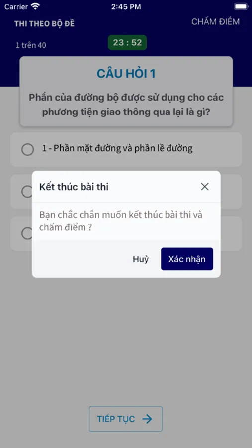 • Bài thi ngẫu nhiên với hàng ngàn đề thi theo cấu trúc ra đề thi của Tổng Cục đường bộ Việt Nam Bộ GTVT.