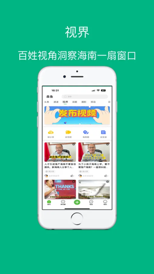 森鱼是一款定位为“自贸港数字生活新图景”的数字生活服务与新媒体内容创作应用。森鱼立足海南自由贸易港、面向全中国,为自贸港市民、游客、候鸟等群体提供生活化价值信息内容和服务。森鱼深耕数字原创内容,与中国特色自由贸易港百姓生活共舞。 森鱼主要特色: