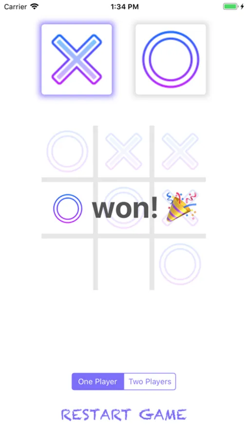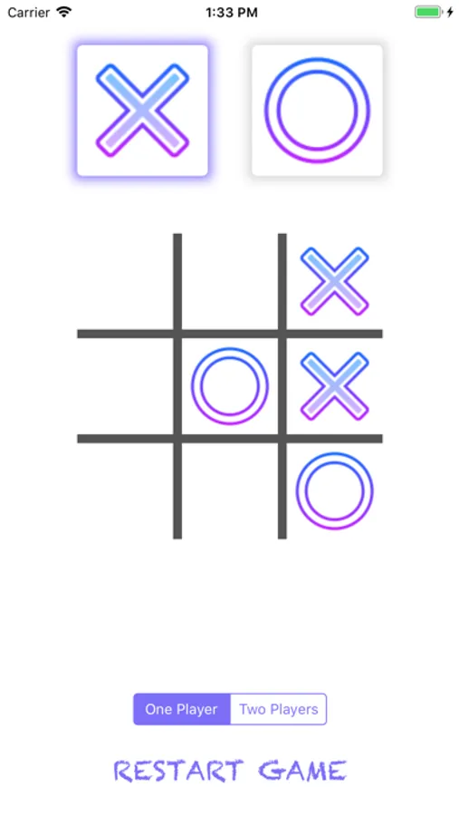 Unbeatable Tic Tac Toe supports one-player and two-player gameplay.